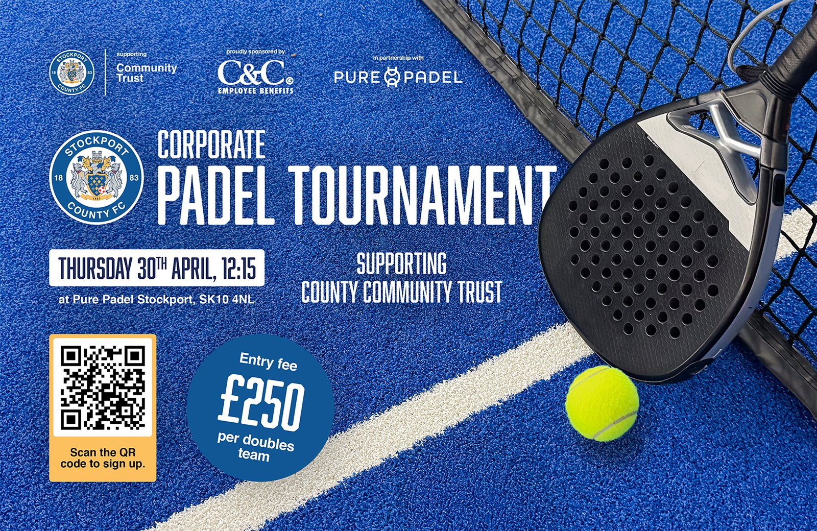 We’re delighted to announce C&C Employee Benefits (CCEB) as the sole sponsor of the very first padel tournament to be hosted by the Stockport County Community Trust.